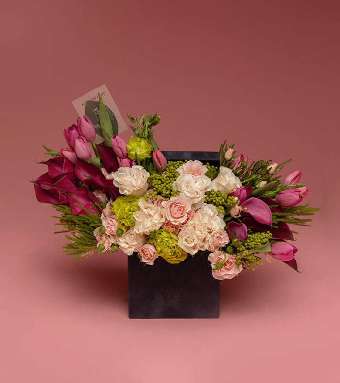 Beautiful Nelly is a floral arrangement that evokes the gentle, soothing essence of a heartfelt embrace. With soft white roses symbolizing purity and devotion, cascading amaranthus adding a touch of wistful elegance, and lush green dianthus bringing a sense of renewal, this piece feels like a whispered melody of affection.