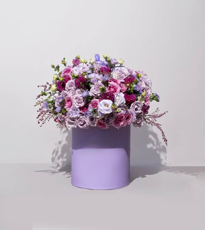 Elegant violet arrangement, showcasing a serene blend of purple hues that evoke calm and sophistication, perfect for adding a touch of grace to any occasion.