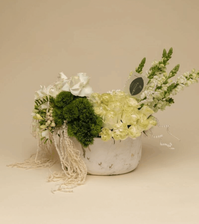The Heavenly Embrace captures the delicate, flowing beauty of the arrangement while emphasizing its soft, timeless grace.