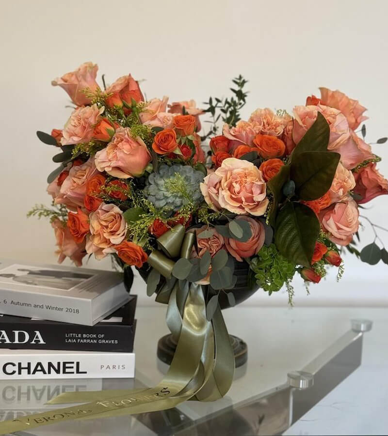 Brighten any space with our vibrant Orange Arrangement. Featuring a stunning mix of orange-hued flowers, this arrangement radiates warmth and energy.