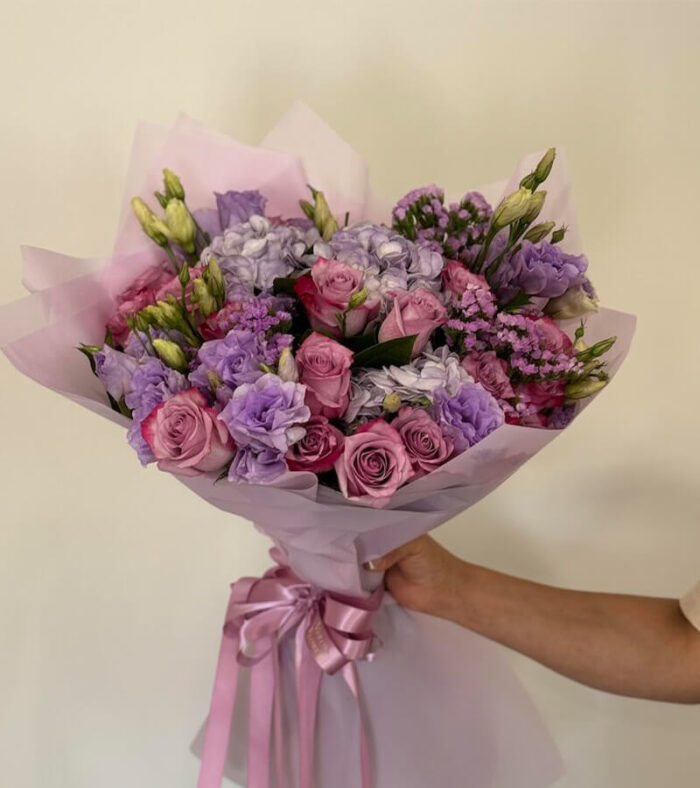 Add a touch of romance and whimsy with our stunning purple and pink flower arrangement. This vibrant bouquet combines the soft blush of pink blooms with the rich, regal tones of purple, creating a harmonious blend of color and elegance. Perfect for brightening any room or celebrating special moments, this arrangement is sure to enchant and delight with its captivating beauty.