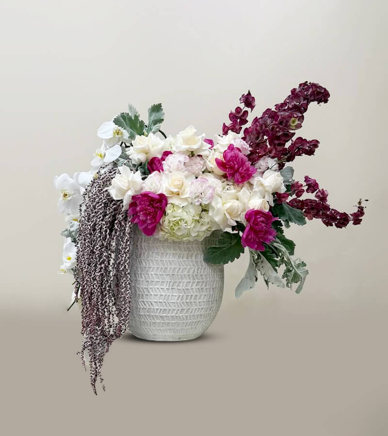Queen’s Grace is a lavish, oversized floral masterpiece designed to captivate and command attention. Overflowing with the world’s most coveted blooms, this regal arrangement is a celebration of elegance, femininity, and power.